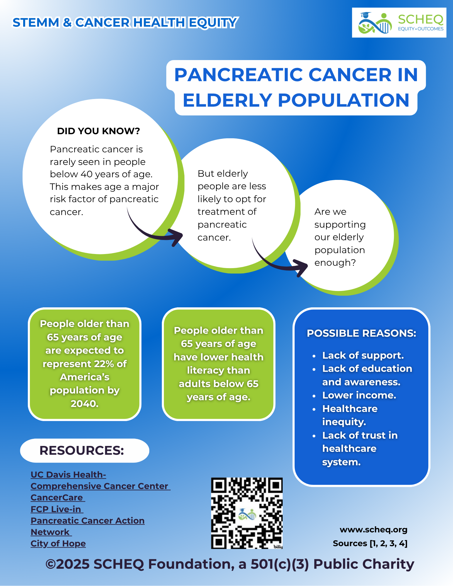 Discover how pancreatic cancer affects the elderly population and why older adults are less likely to seek treatment. This infographic by SCHEQ explores key risk factors, healthcare inequities, and the urgent need to improve support and health literacy for seniors facing pancreatic cancer.